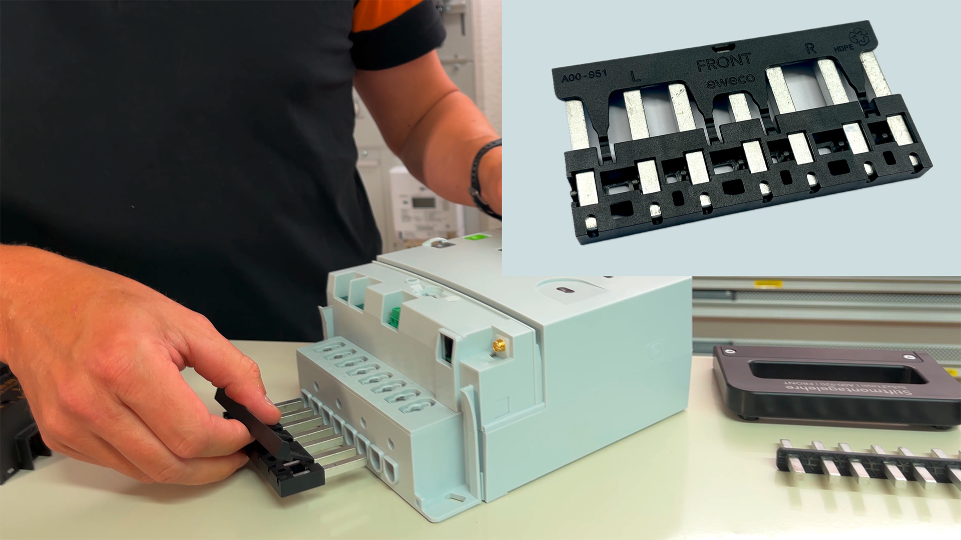 The pin magazine allows pre-assembled meter pins to be easily inserted into a smart meter. When removing the magazine, it is immediately apparent if all screws have been tightened, ensuring a reliable and error-free installation process for smart metering systems.